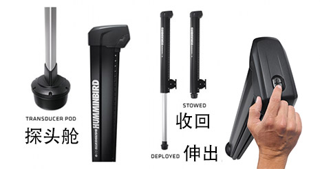 探头伸缩系统(Transducer Deployment System - TDS)可以自由伸缩Humminbird 360°的旋转侧扫声纳探头,以避免当船舶在浅水区域航行时损坏探头。