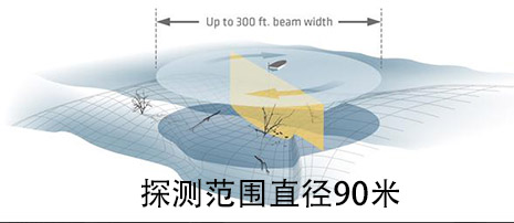 Humminbird 360°全方位水下成像鱼探仪,采用是与Humminbird其它侧扫声纳相同的技术,只不过是利用可以360°旋转的侧扫声纳探头,通过电脑软件进行图像合成处理,得到船下直径90米范围内全方位的水下结构图像。直径90米的圆形范围覆盖了6566平方米的区域。它就像是利用长度为45米的薄薄的声纳波束墙,实时地将船下方以本船为中心、半径45米范围内的水下结构完整地展现出来。